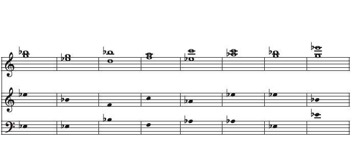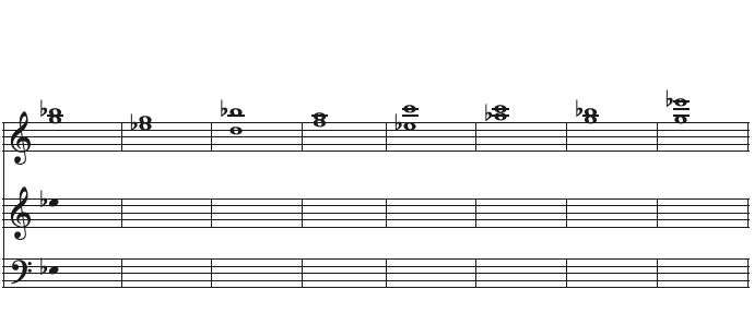Höre die Aufnahme in reiner Intonation und notiere in den beiden unteren Systemen die hörbaren Differenztöne. Kontrolliere anschließend mit der Folie "Differenztöne".