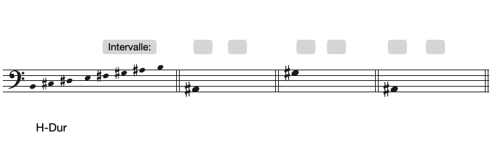 große/kleine Sekund (+2/-2), große/kleine Terz (+3/-3), Quarte (4), Quinte (5), Tritonus (T)
