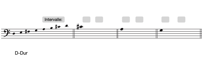 große/kleine Sekund (+2/-2), große/kleine Terz (+3/-3), Quarte (4), Quinte (5), Tritonus (T), große/kleine Sexte (+6/-6)