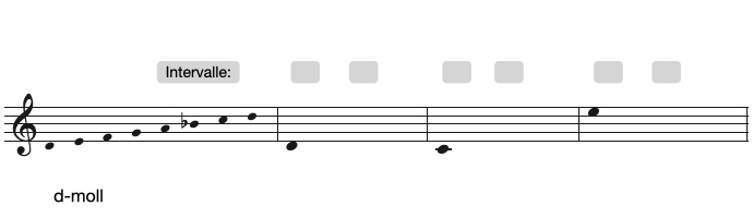 große/kleine Sekund (+2/-2), große/kleine Terz (+3/-3), Quarte (4), Quinte (5), Tritonus (T), große/kleine Sexte (+6/-6), große/kleine Septime (+7/-7)