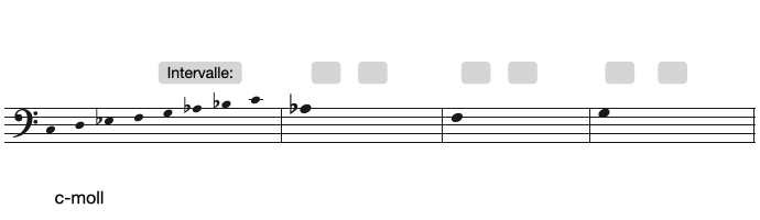 große/kleine Sekund (+2/-2), große/kleine Terz (+3/-3), Quarte (4), Quinte (5), Tritonus (T), große/kleine Sexte (+6/-6), große/kleine Septime (+7/-7)