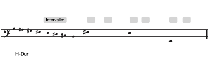 große/kleine Sekund (+2/-2), große/kleine Terz (+3/-3), Quarte (4), Quinte (5), Tritonus (T), große/kleine Sexte (+6/-6), große/kleine Septime (+7/-7)