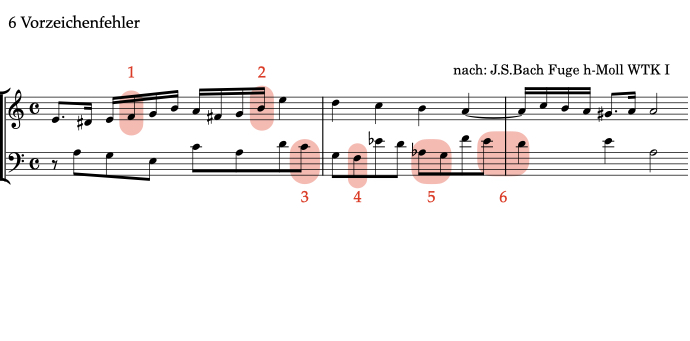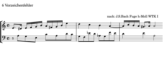 Alle Beispiele im Bereich Fehlerhören sind transponierte Varianten von Übungen, die an anderer Stelle in ear-training.org vorkommen. Aus diesem Grund steht das folgende Beispiel in einer anderen Tonart als im Original.