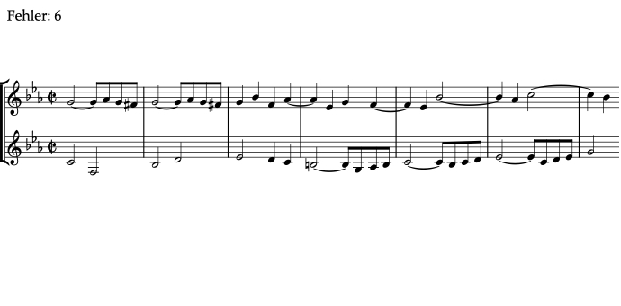 nach: J.S. Bach, Kunst der Fuge (d-Moll). Alle Beispiele im Bereich Fehlerhören sind transponierte Varianten von Übungen, die an anderer Stelle in ear-training.org vorkommen. Aus diesem Grund steht das folgende Beispiel in einer anderen Tonart als im Original.