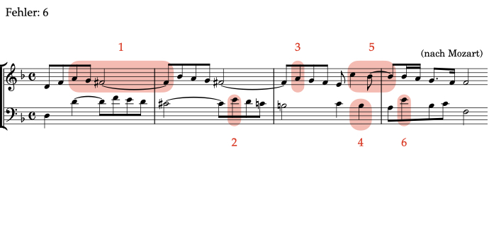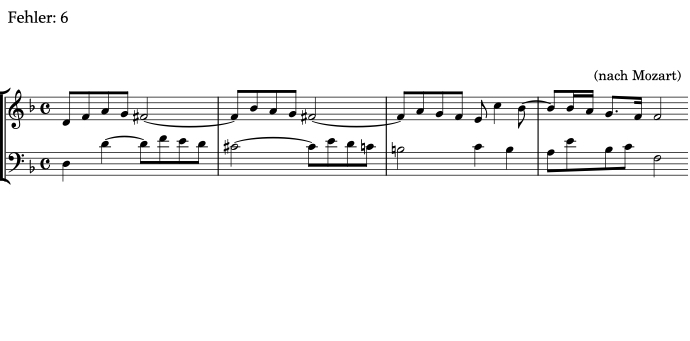 nach: W.A. Mozart, Klavierkonzert Nr. 24 in c Moll KV 491, I. Allegro. Alle Beispiele im Bereich Fehlerhören sind transponierte Varianten von Übungen, die an anderer Stelle in ear-training.org vorkommen. Aus diesem Grund steht das folgende Beispiel in einer anderen Tonart als im Original.