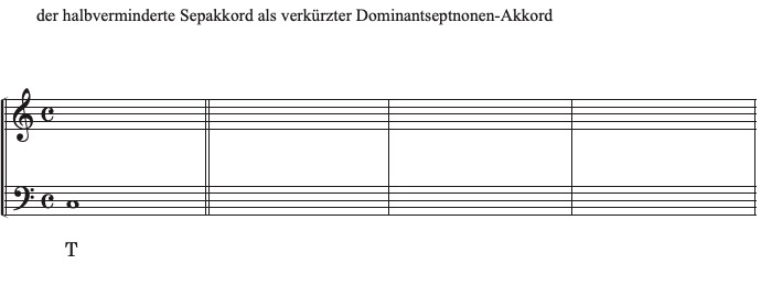 Allerdings kann der halbverminderte Septakkord in anderem Zusammenhang auch subdominantisch interpretiert werden (z.B. als moll-Subominante mit Sixte ajoutée (s. Kurs B 2.). Der halbverminderte Klang ist somit ein äußerst geheimnisvoller, ambivalenter und wandelbarer Klang - in der Romantik wird dieser Akkord zentral (z.B. "Tristan-Akkord"). Wir werden den halbverminderten Akkord als Subdominante in den nächsten beiden Kapiteln genauer untersuchen (Kurs C 3., Kurs D 1.).