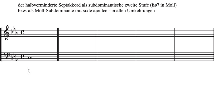 Aufgrund des system-immanenten Widerspruchs zwischen den Theoriemodellen (Funktions- vs. Stufentheorie) werden die halbverminderten Akkorde hier doppelt bezeichnet. Weitere Erläuterungen findest du in Kurs C 3.